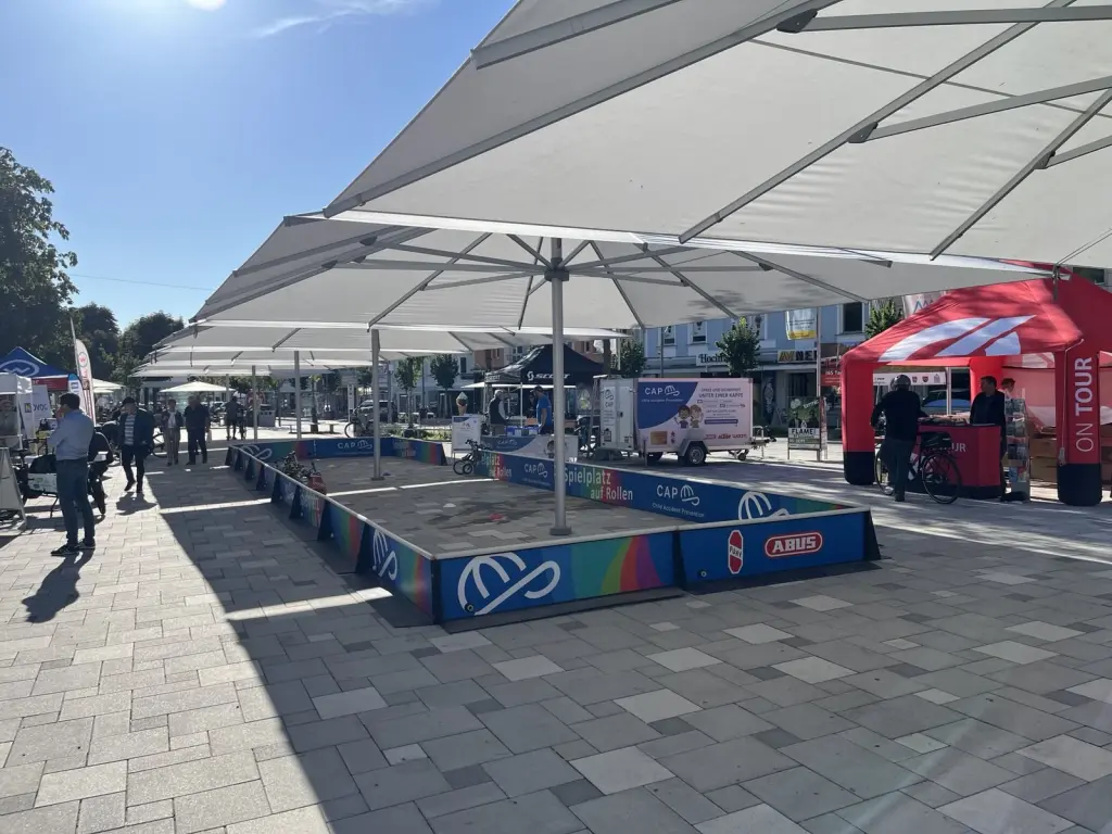 befestigte, ebene Fläche (keine Kanaldeckel, kein Gefälle über 2 %, keine Pflastersteine)